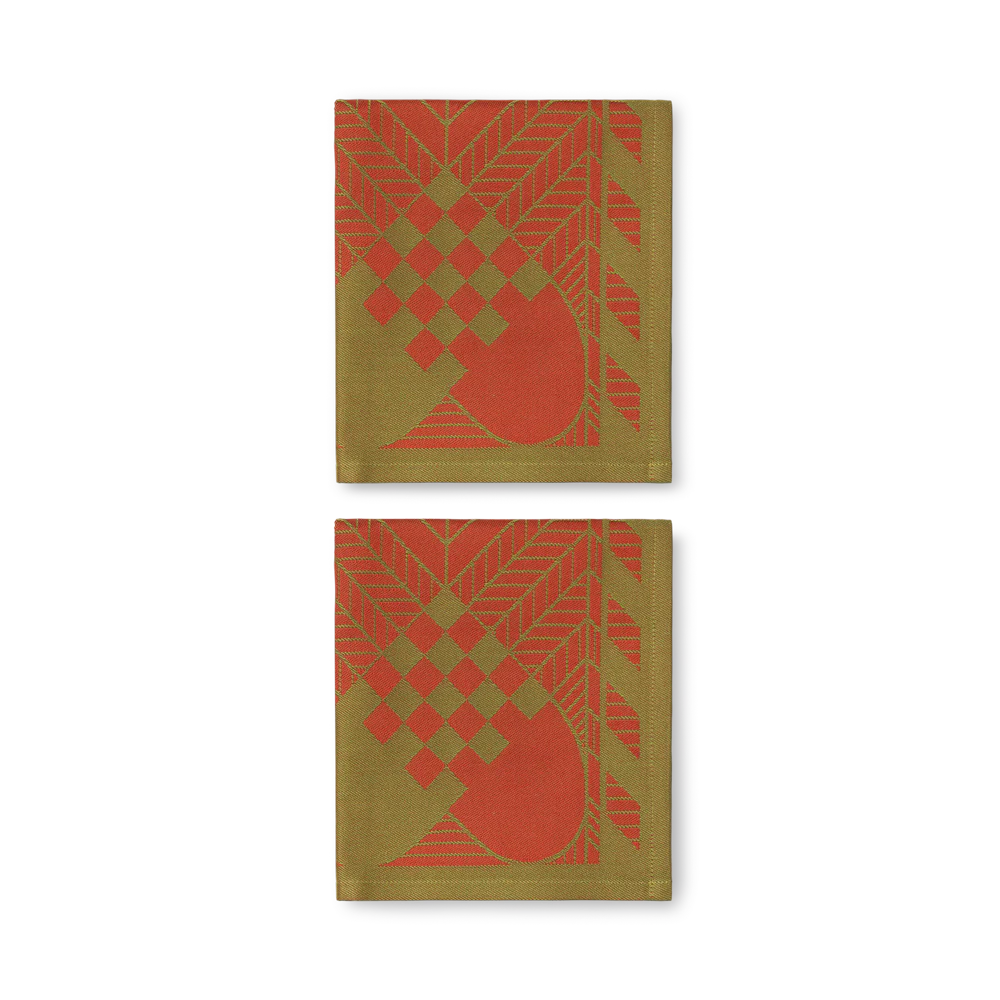 Den helt klassiske farvekombination i julerød og guld har en særlig plads i hjertet hos mange og har været i vores kollektion lige siden lanceringen i 1975. I al sin smukke enkelhed værner dækkeservietten i den oprindelige farvekombination om traditionerne. Matchende stofservietter fuldender udtrykket.