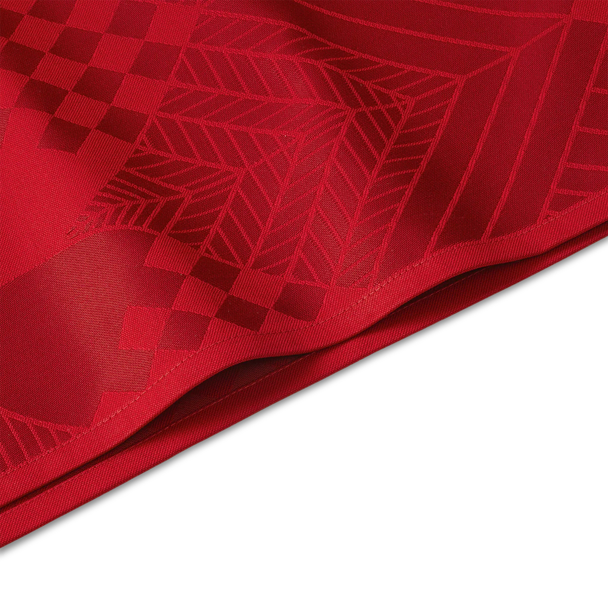 I den mørkerøde variant er to nuancer af julens ikoniske farve kombineret i vævningen, hvilket giver bordløberen en enkel, klassisk og stilfuld fremtoning. Matchende stofservietter fuldender udtrykket.