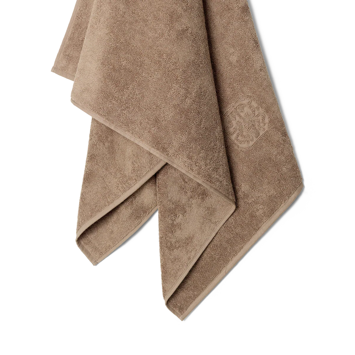 Eksklusivt badehåndklæde i varm brun farve og 100 % bomuldsfrotté af højeste kvalitet, der sikrer velvære for krop og sjæl.