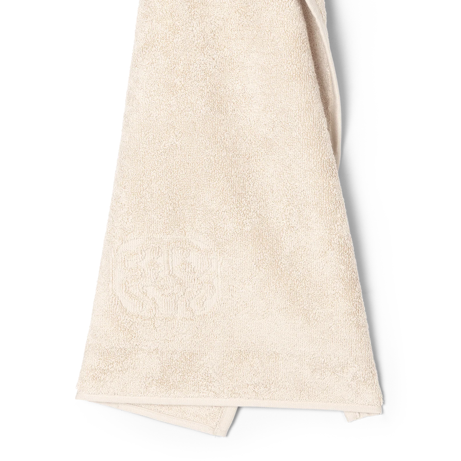 Damask Terry gæstehåndklædet har et enkelt udtryk med Georg Jensen Damasks ikoniske logo indvævet som elegant detalje. Archive Linen er en lys beige farve med referencer til linned fra vores århundreder gamle arkiv.