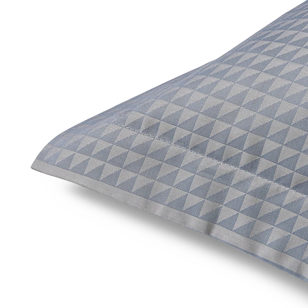 Georg Jensen Damasks Facet sengetøj har et stringent design og er damaskvævet i 100 % kæmmet bomuld, som giver en blød og glat overflade. Med Facet designet benytter tekstilkunstner Jette Nevers den klassiske damaskvævning til at skabe et elegant skyggespil, der smukt fremhæves i de smukke grå toner i farven Quartz.