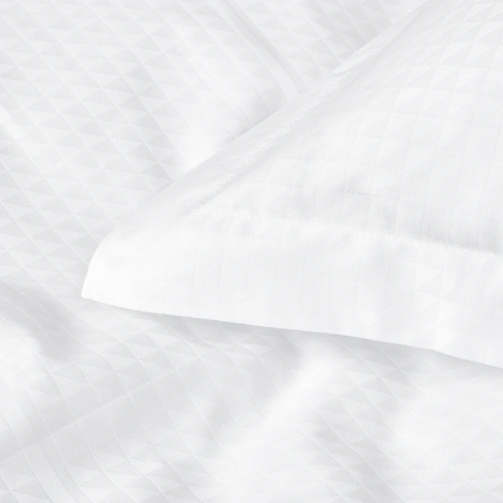 Georg Jensen Damasks Facet sengetøj har et stringent design og er damaskvævet i 100 % kæmmet bomuld, som giver en blød og glat overflade. Med Facet designet benytter tekstilkunstner Jette Nevers den klassiske damaskvævning til at skabe et elegant skyggespil.