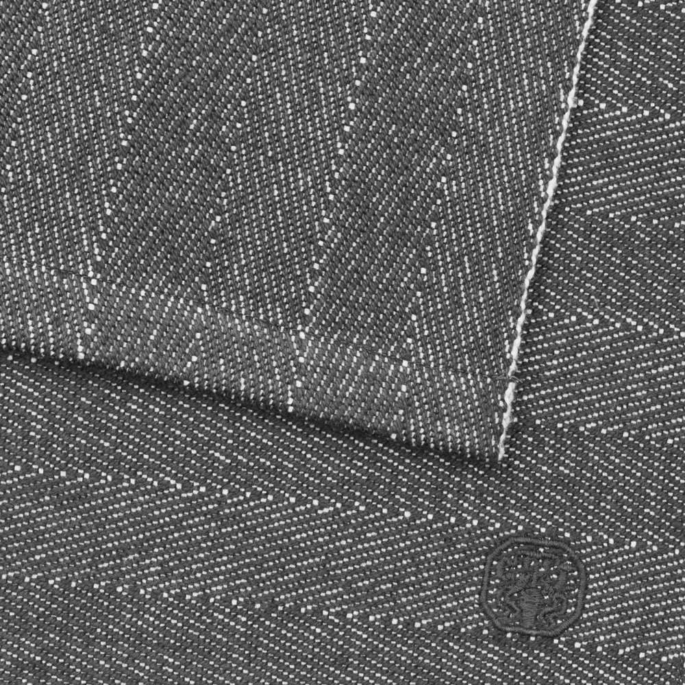 Dækkeservietten Herringbone er sildebensvævet i 100 % bomuld. Herringbone har et lille broderet Georg Jensen Damask-logo og ligger tungt på bordet. Den fine sildebensvævning ses tydeligt på den mørkegrå variant Dark Grey.