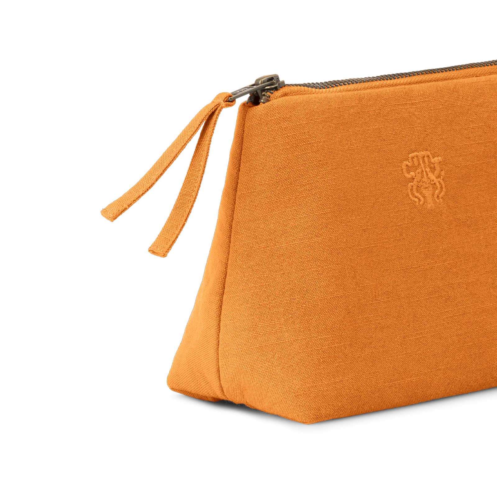 Funktionel og rummelig kosmetikpung i et tidløst design. All kosmetikpungen er vævet i 100 % bomuld med en indre lomme og har Georg Jensen Damasks logo broderet som elegant detalje. Farven Chanterelle er en dyb orange med undertoner af karamel – inspireret af kantarellens smukke nuancer.