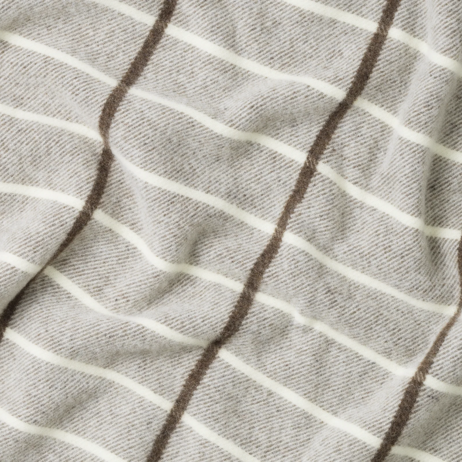 Tartan plaiden har et elegant og klassisk ternet mønster. Kombination af 90 % merinould og 10 % cashmere gør plaiden ekstra blød og uldens fine struktur tilføjer en særlig lethed. Den er vævet i brune og hvide nuancer og er afsluttet med frynser i top og bund.
