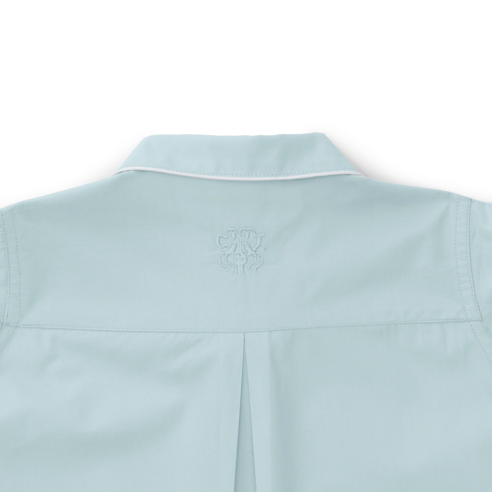 Skjorten har sideslidser, brystlomme, afrundet krave og Georg Jensen Damasks ikoniske logo broderet på bærestykket i nakken. Bukserne har en bred og behagelig elastik i taljen og lommer. Bukse- og ærmelængde kan let tilpasses med et opsmøg, hvor indersiden har en elegant piping.