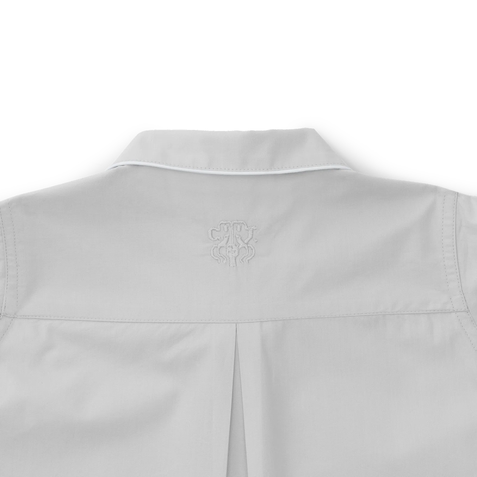Skjorten har sideslidser, brystlomme, afrundet krave og Georg Jensen Damasks ikoniske logo broderet på bærestykket i nakken. Bukserne har en bred og behagelig elastik i taljen og lommer. Bukse- og ærmelængde kan let tilpasses med et opsmøg, hvor indersiden har en elegant piping.