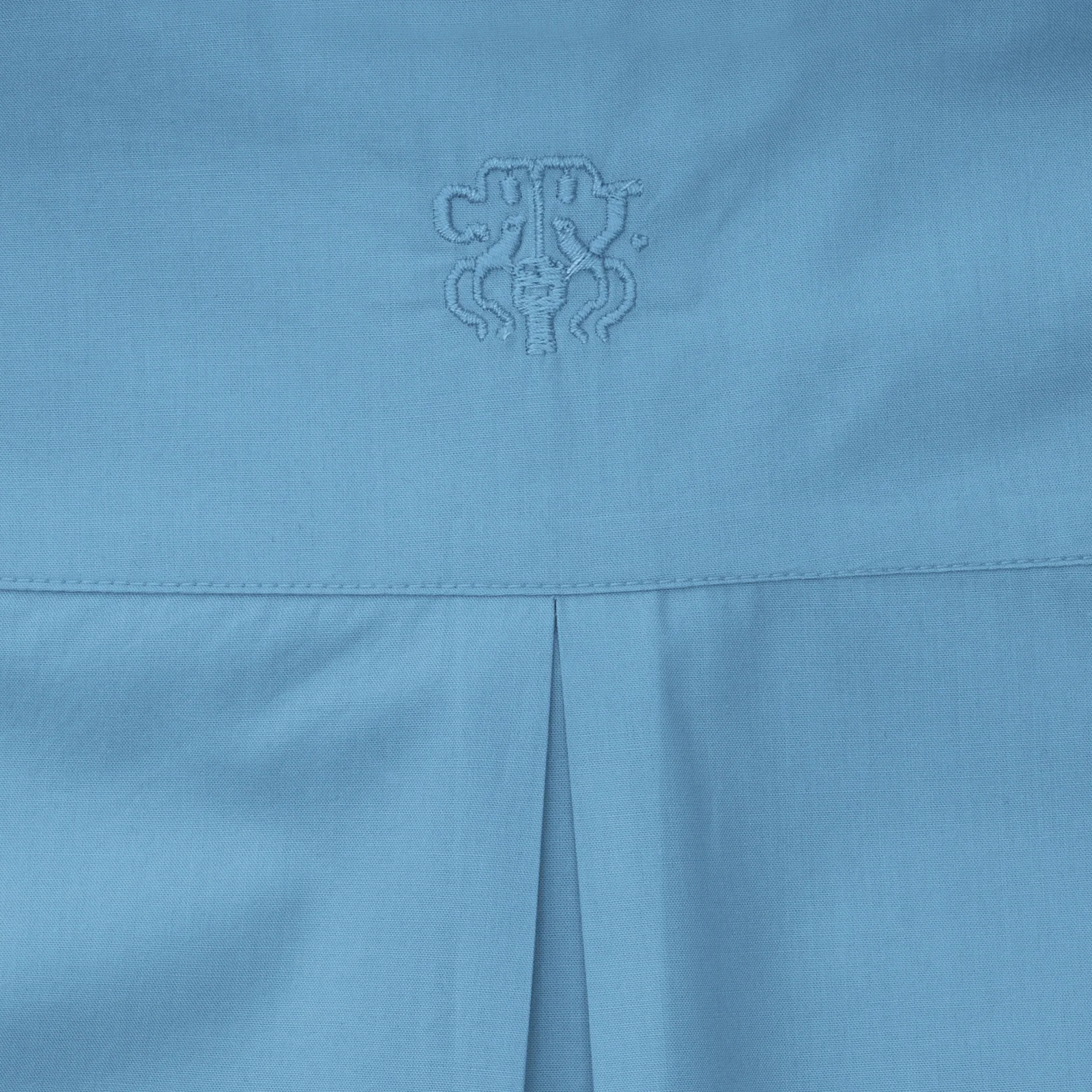Skjortekjole til børn percalevævet i supimabomuld. Bright Blue er en mættet nuance af blå med referencer til den klare sommerhimmel.