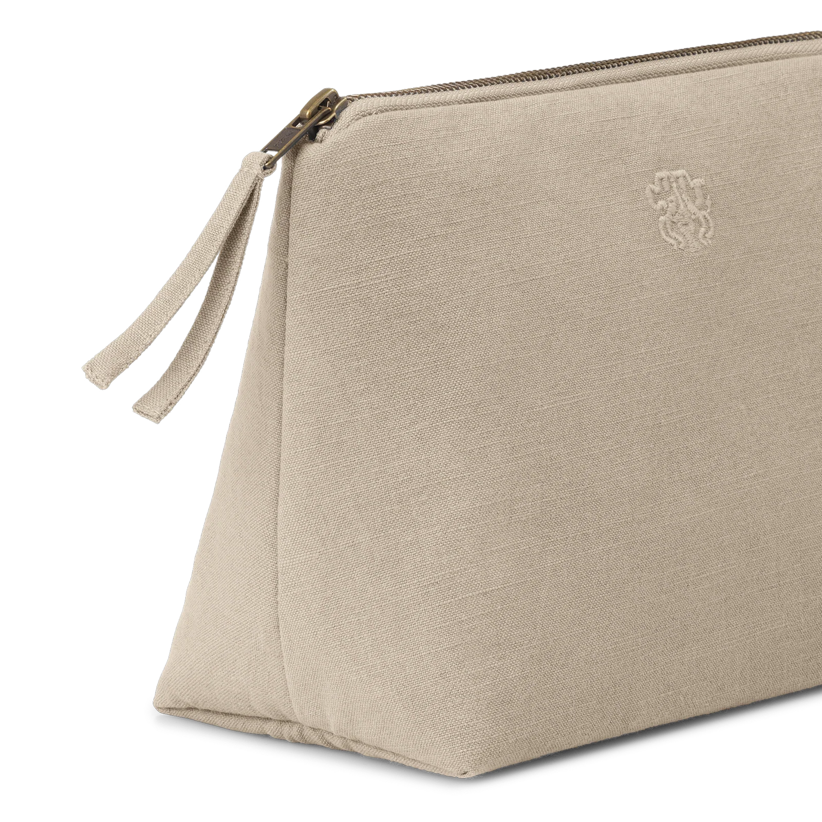 Funktionel og rummelig toilettaske i et tidløst design. All toilettasken er vævet i 100 % bomuld med en indre lomme og har Georg Jensen Damasks logo broderet som elegant detalje. Farven Cashmere er en diskret, brun nuance af grå, der har et roligt og eksklusivt udtryk – inspireret af råfarven på kashmirfårets uld.