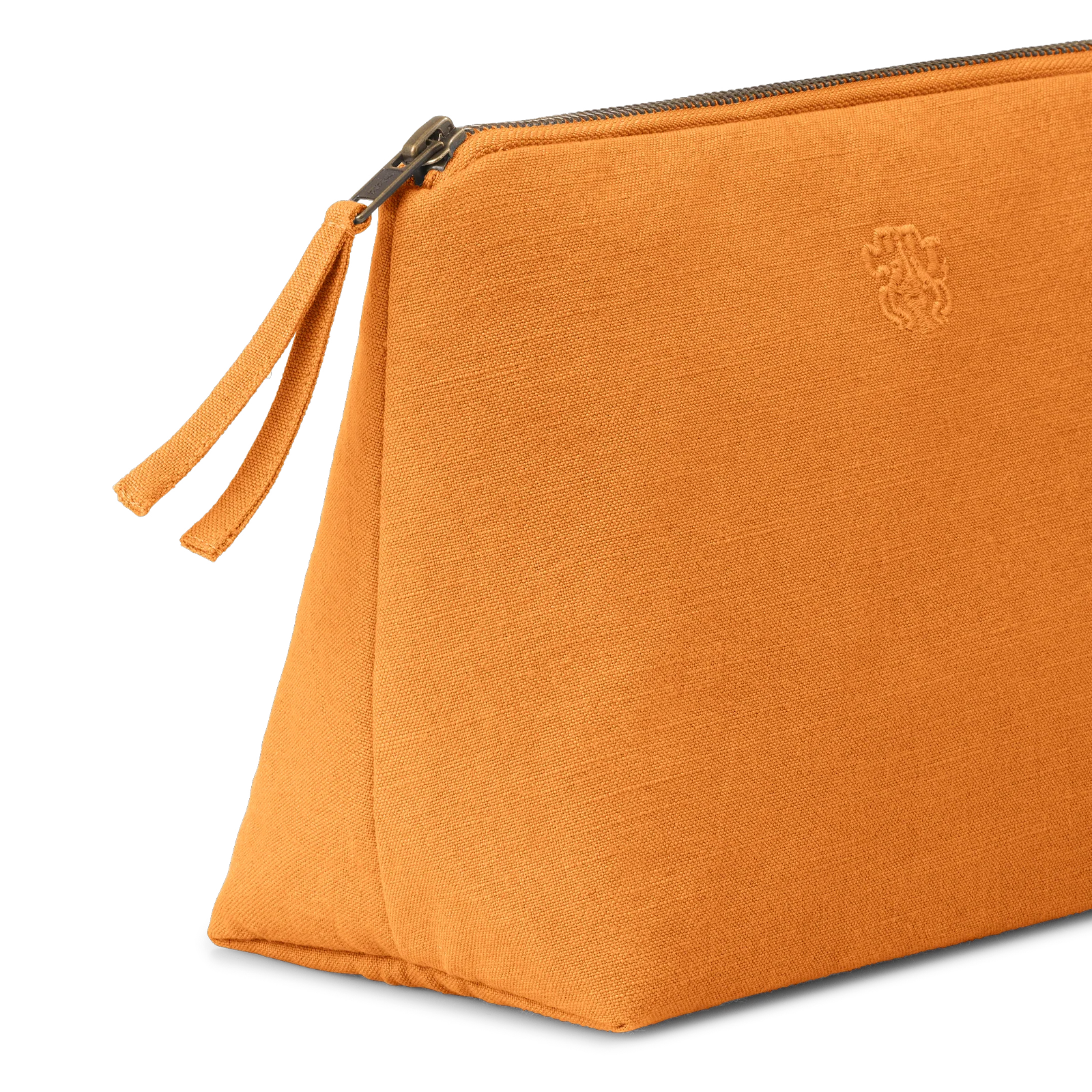 Funktionel og rummelig toilettaske i et tidløst design. All toilettasken er vævet i 100 % bomuld med en indre lomme og har Georg Jensen Damasks logo broderet som elegant detalje. Farven Chanterelle er en dyb orange med undertoner af karamel – inspireret af kantarellens smukke nuancer.